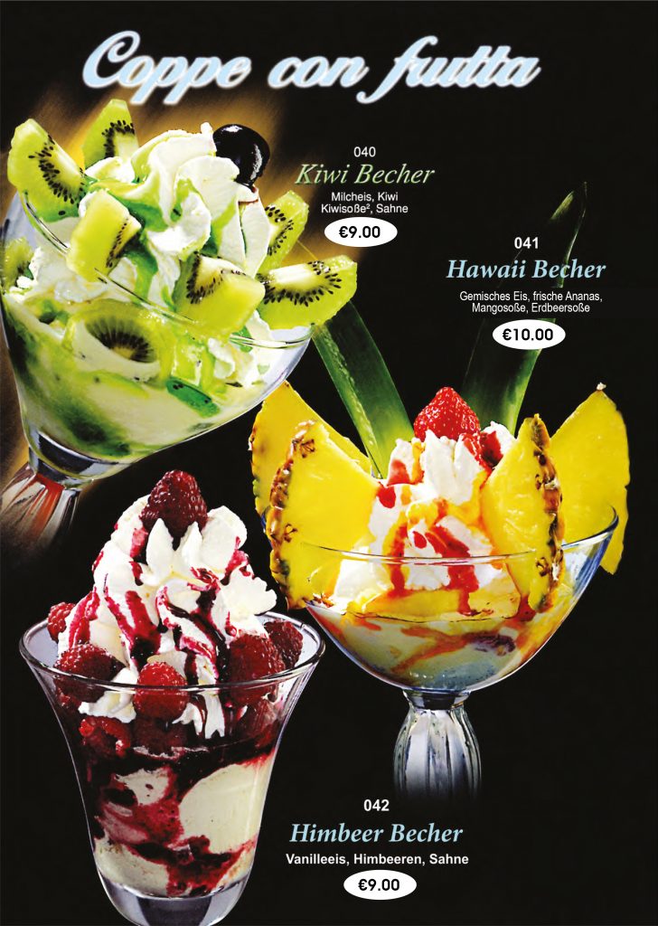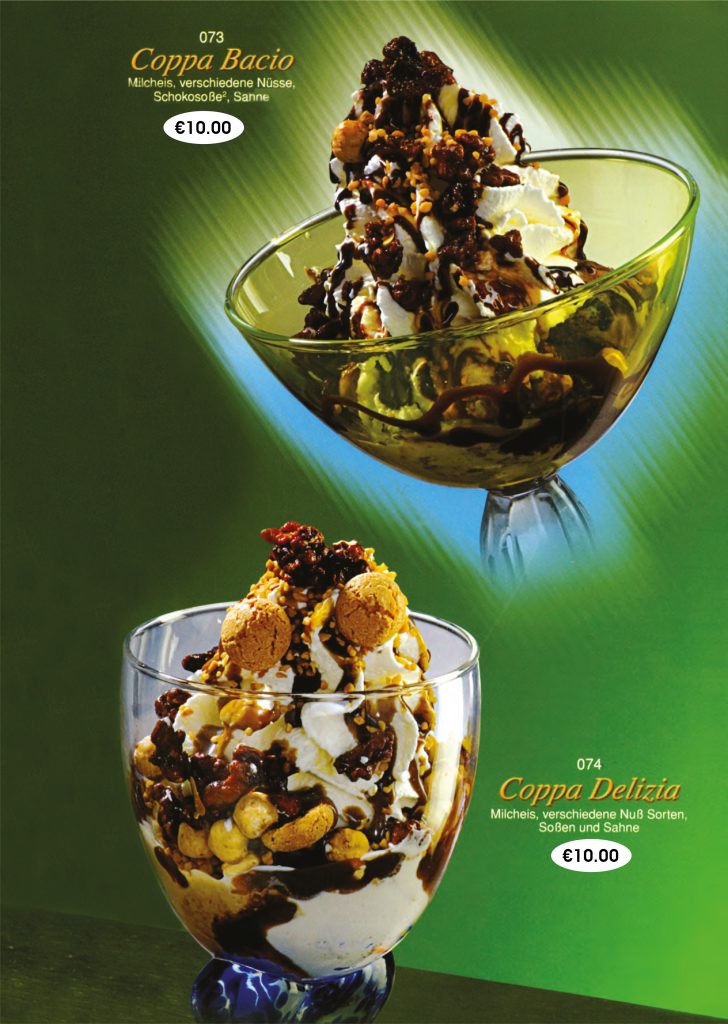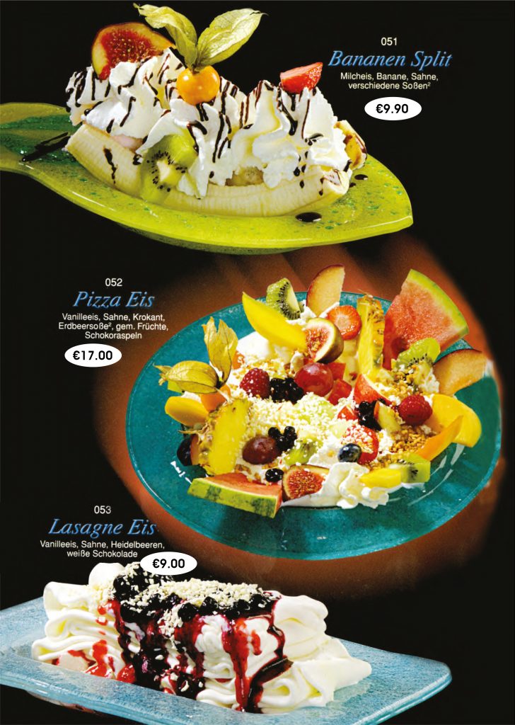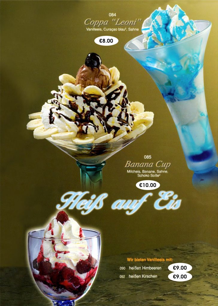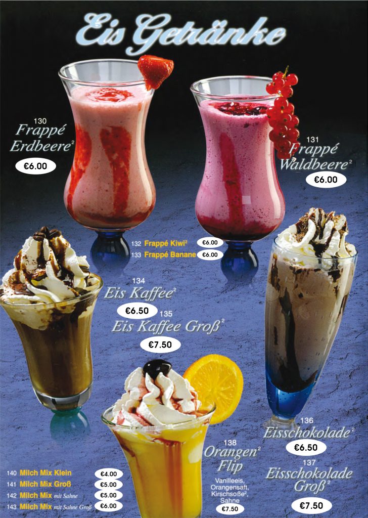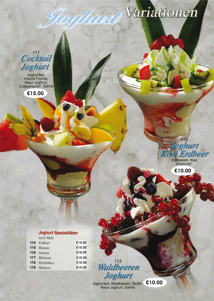 speisekarte Eisgerichte JOGHURT VARIATONEN eis getränke heissgetränke softdrinks joghurt variatonen eis getränke HEISSGETRÄNKE SOFTDRINKS