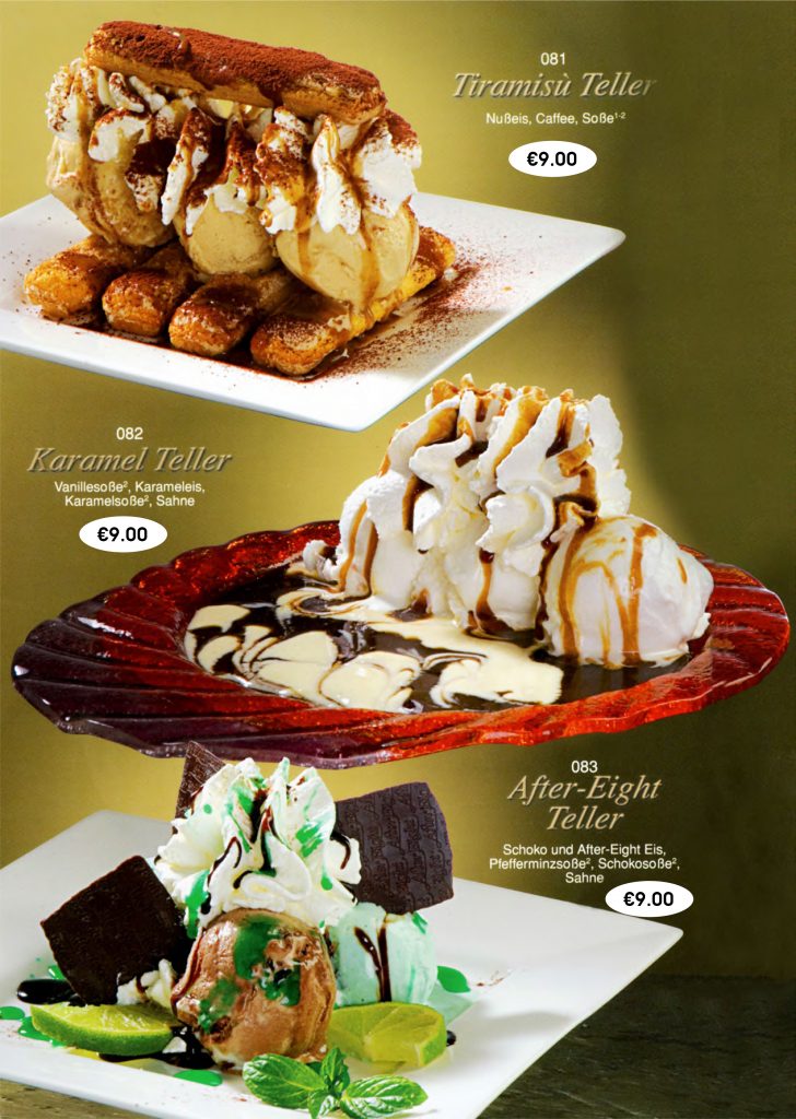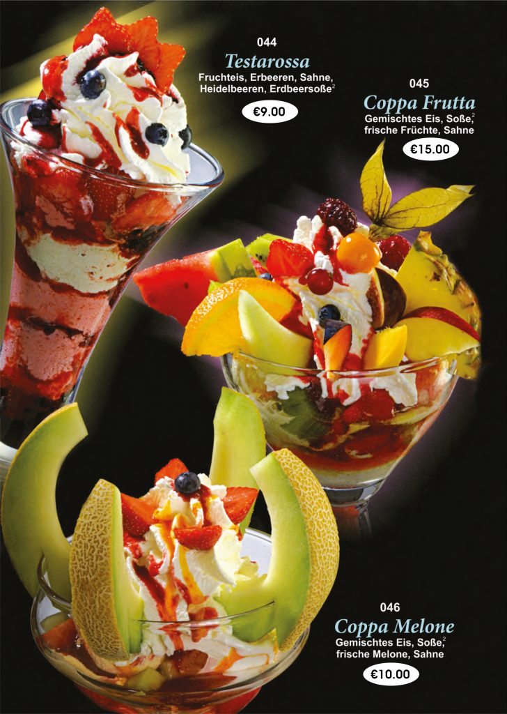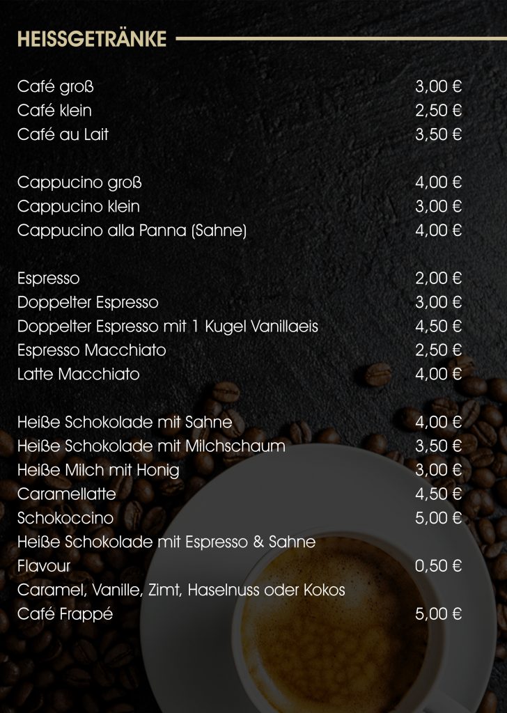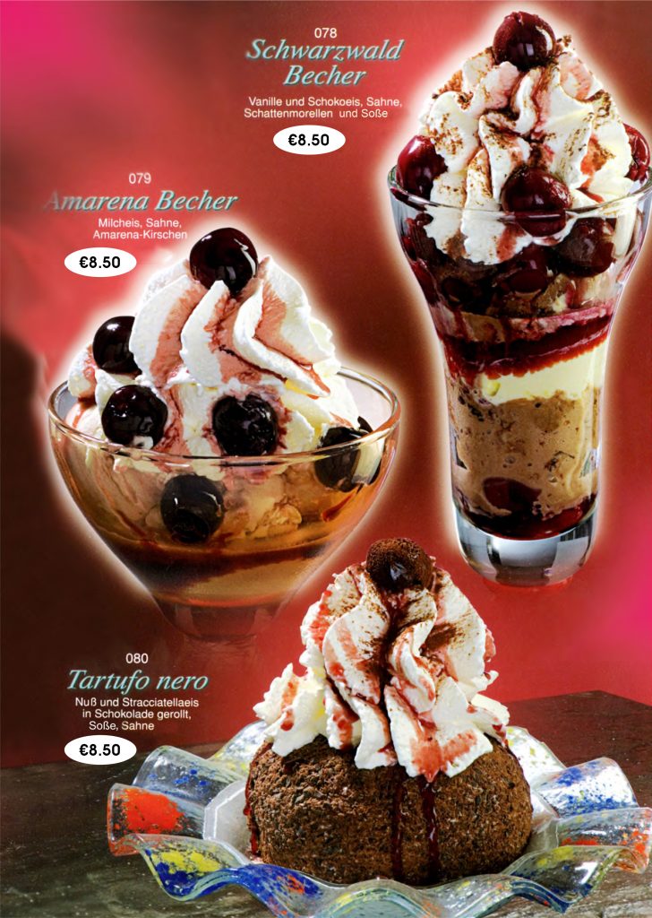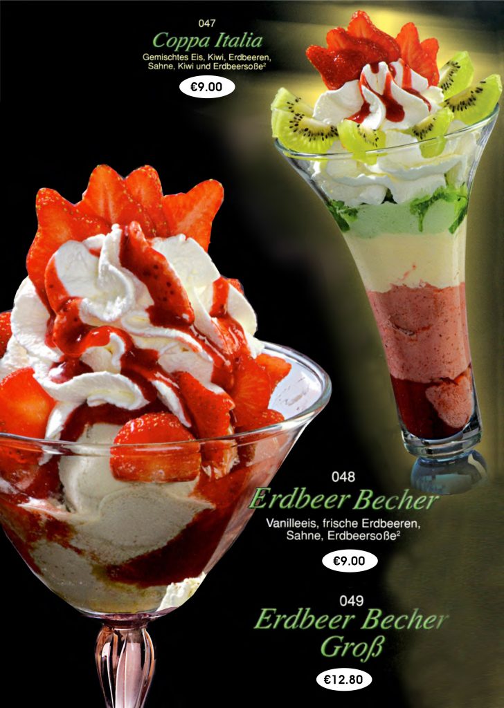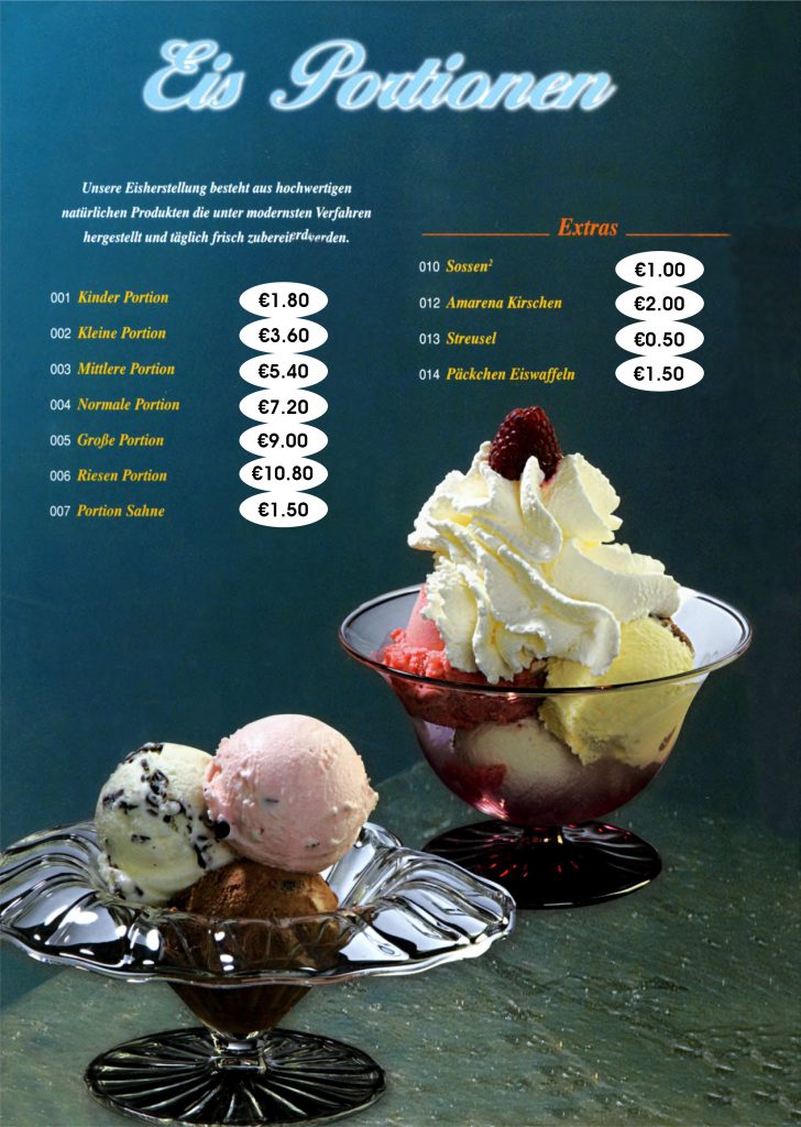 speisekarte Eisgerichte JOGHURT VARIATONEN eis getränke heissgetränke softdrinks joghurt variatonen eis getränke HEISSGETRÄNKE SOFTDRINKS
